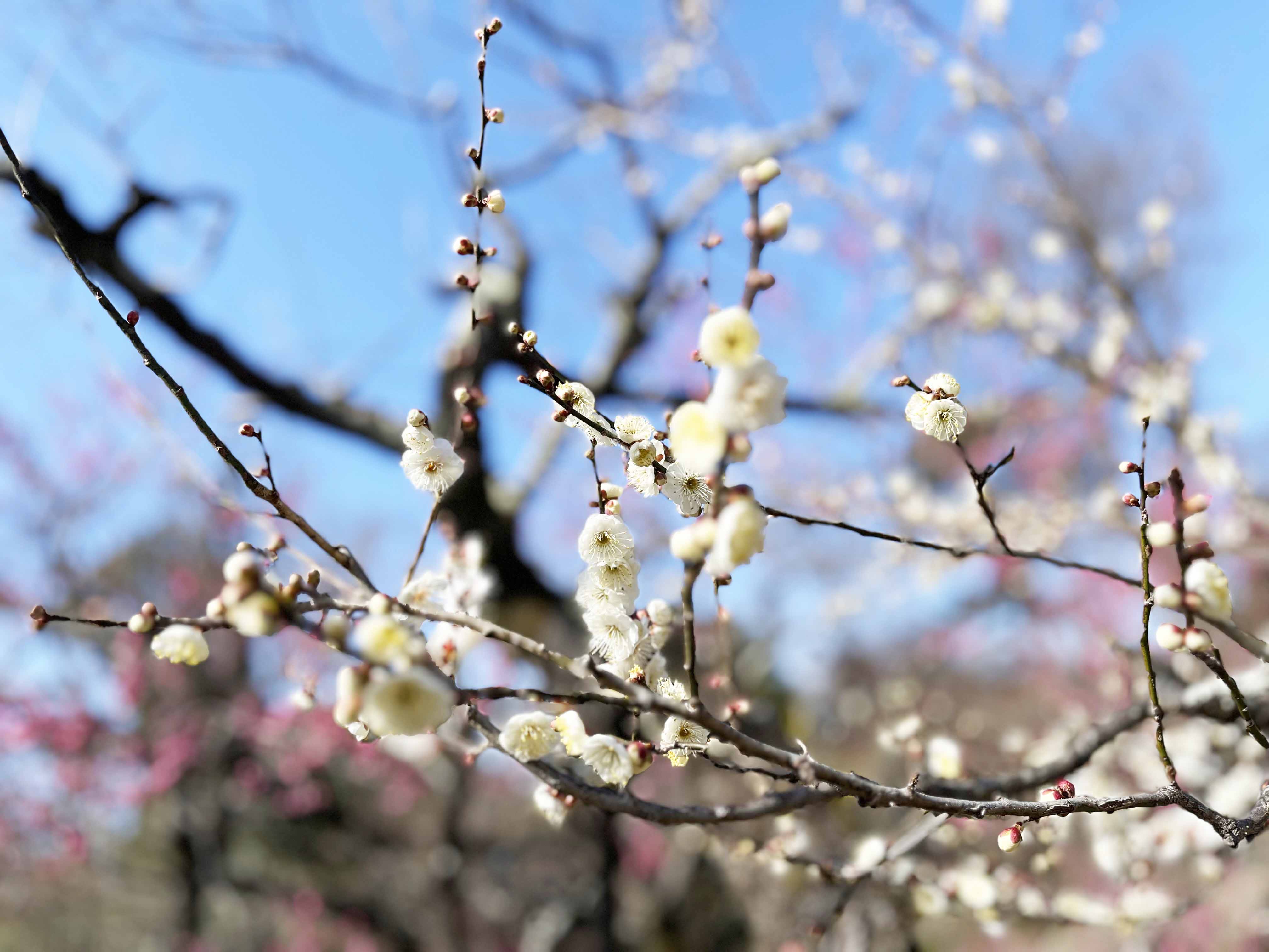 梅園としても有名で、俳諧の祖として知られている松永貞徳により作庭された一つ、梅苑「花の庭」として親しまれています。境内にはなんと50種1500本もの梅の木があるそうで、毎年この時期には、紅白のきれいな梅の花を観ることができます。 この日は寒く、まだ蕾が多かったですが、それでも咲きはじめの小さな梅の花がたくさんみられ、春の訪れを感じさせてくれました。2月上旬から3月下旬にかけ、夜間はライトアップも行われているそうです。 皆さまも、京都へお越しの際には、春の訪れを感じる可憐な梅の花を、ぜひご覧になってみてください。